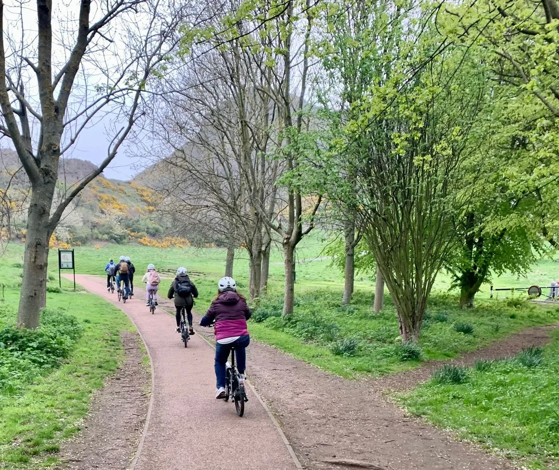 We cycle through the Victorian railway tunnel and up into Holyrood Park. Stop for a photo of Arthur’s Seat, Salisbury Crags and views of Edinburgh Castle and the Old town. We then enjoy a lovely sweeping downhill ride to Holyrood Palace and Scottish Parliament. We then continue round Arthur’s Seat for the most stunning views. On our return we pass Craigmillar Castle - the important location of Mary Queen of Scots and of course, Outlander. Minimum age 14 due to E-bike laws in UK. Start and end at Bridgend Farmhouse.